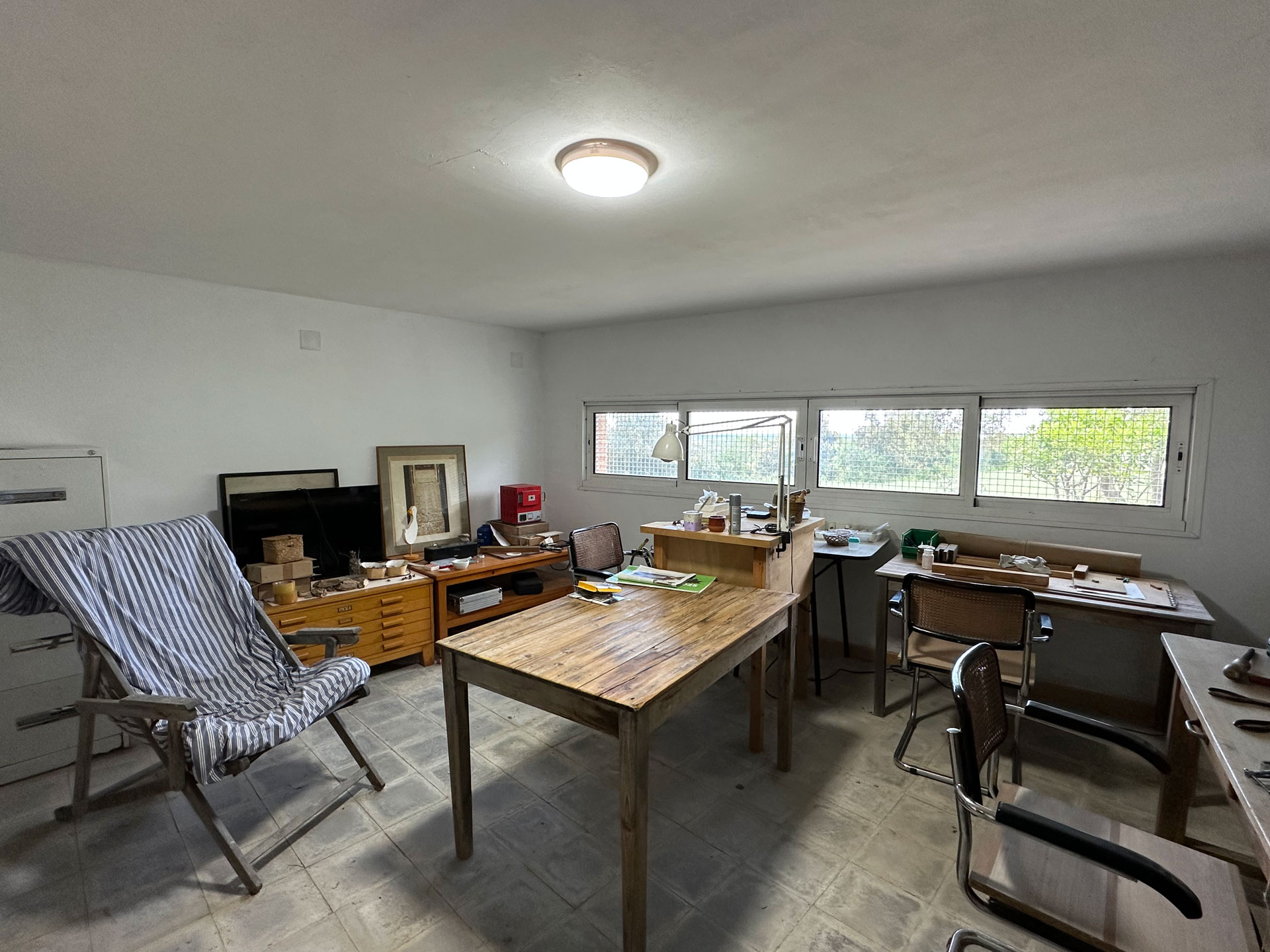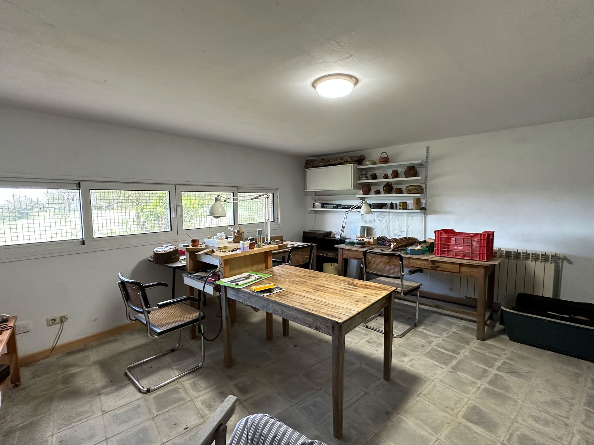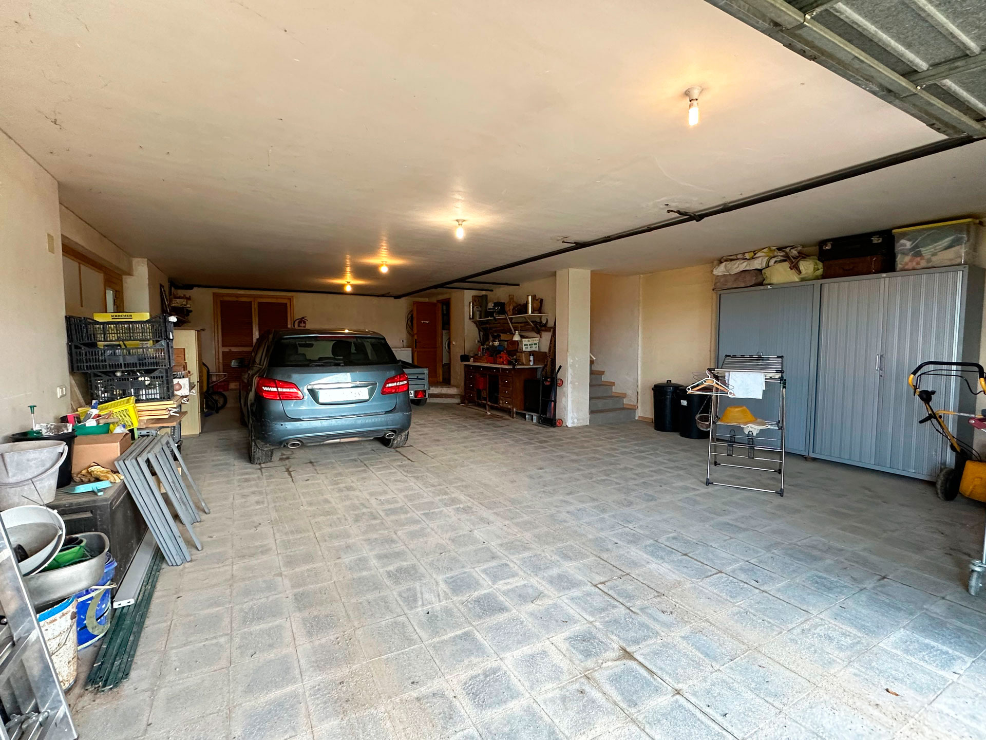 On the basement level, accessible from the ground floor and also from the outside, there is a spacious garage with room for three vehicles, a bright room currently used as an office-workshop, a utility room with laundry, and a cellar. This floor offers many possibilities for use according to the new owner’s needs.