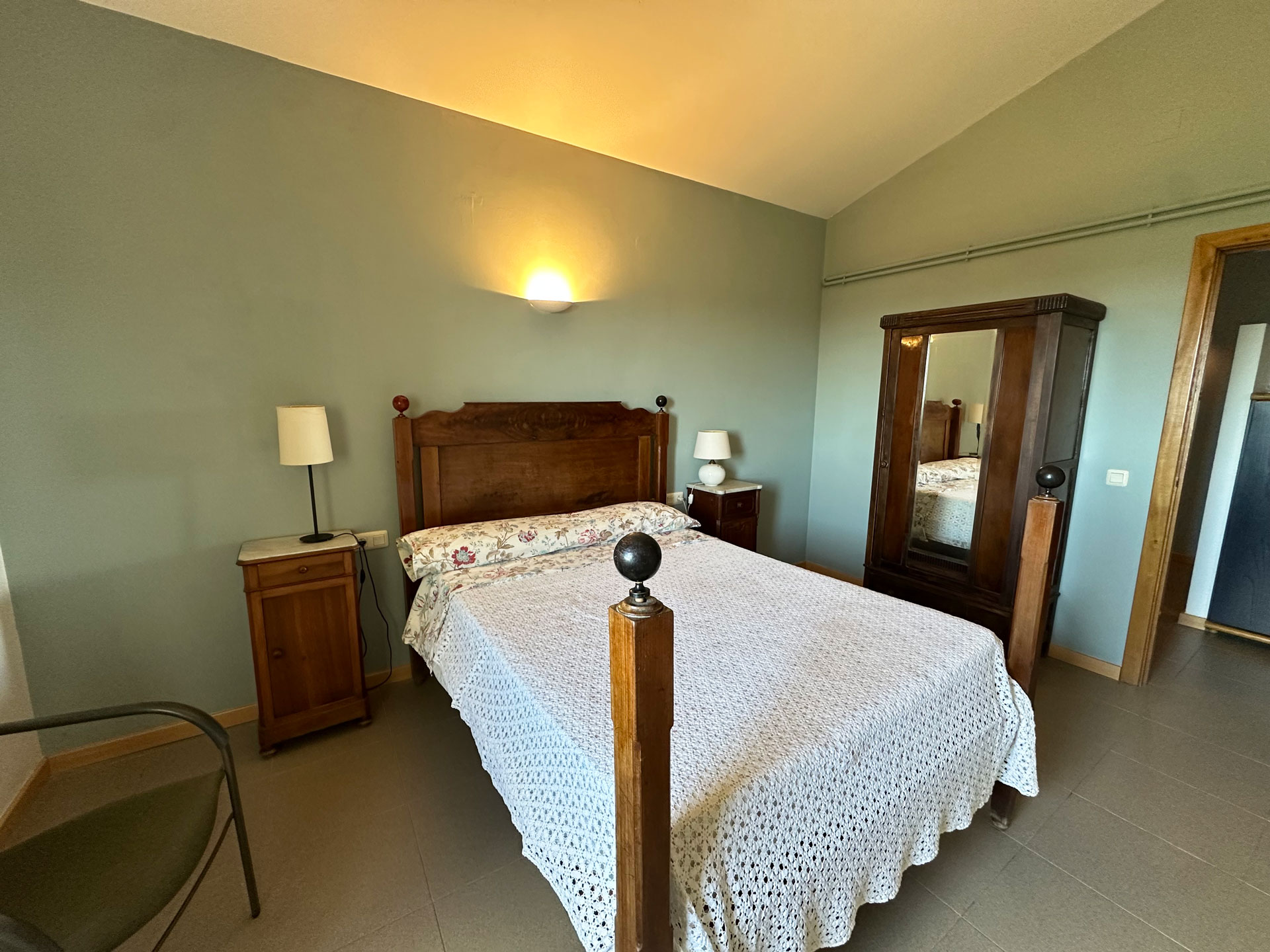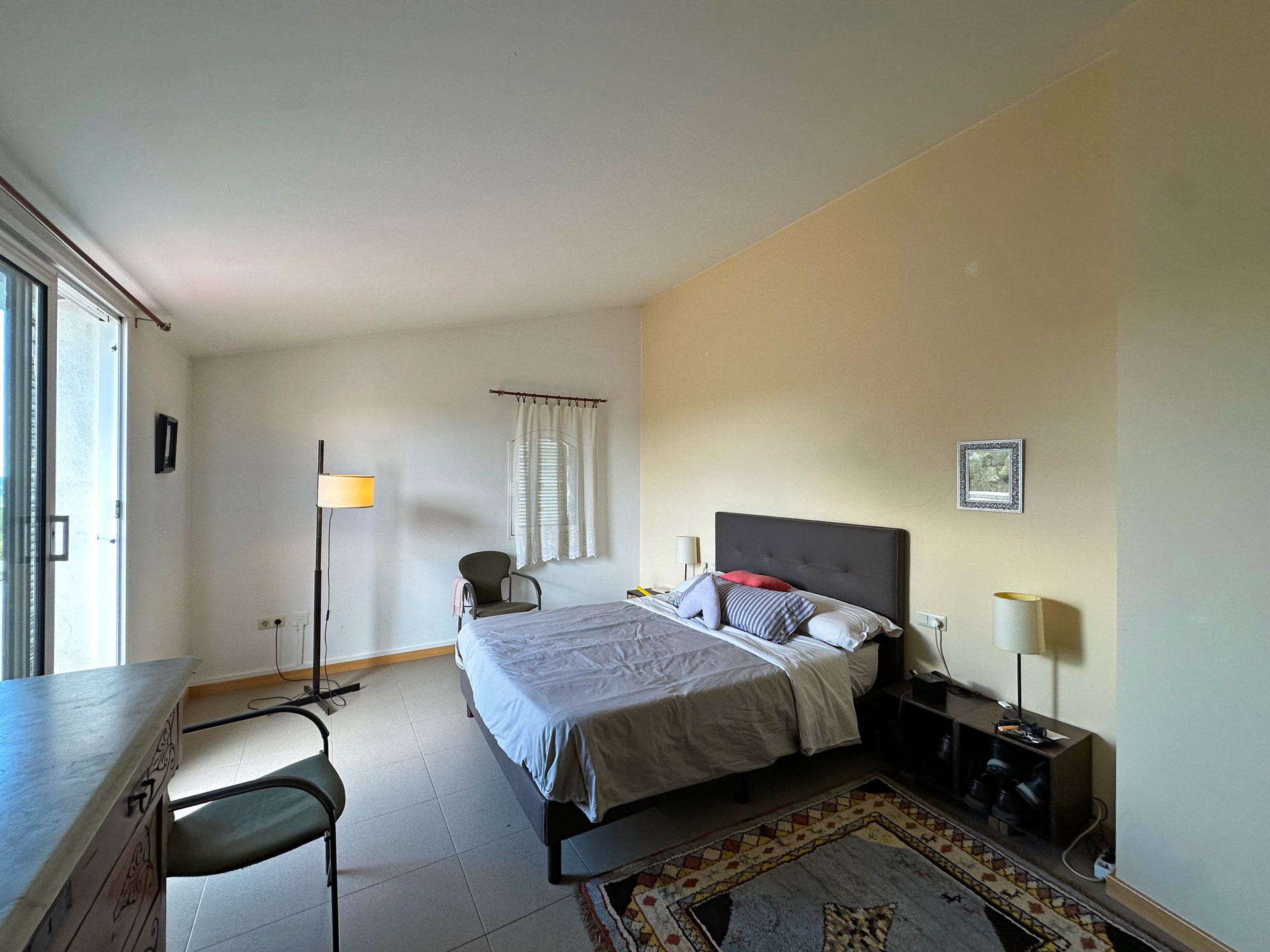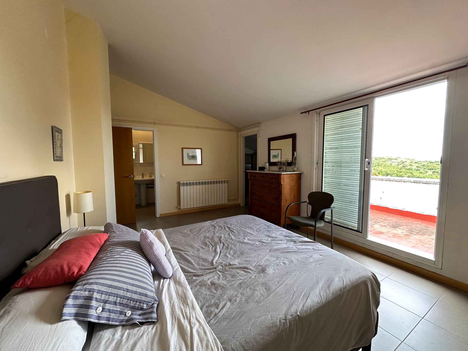 The kitchen is fully equipped and features a functional design. On this same floor, there is a full bathroom. From here, a staircase leads to the upper floor, where four double bedrooms are distributed. The master suite has a dressing room, private bathroom, and direct access to a private terrace with views. The other three rooms share a full bathroom. The sleeping area has air conditioning in the suite and in the hallway, ensuring comfort even in the warmer months.