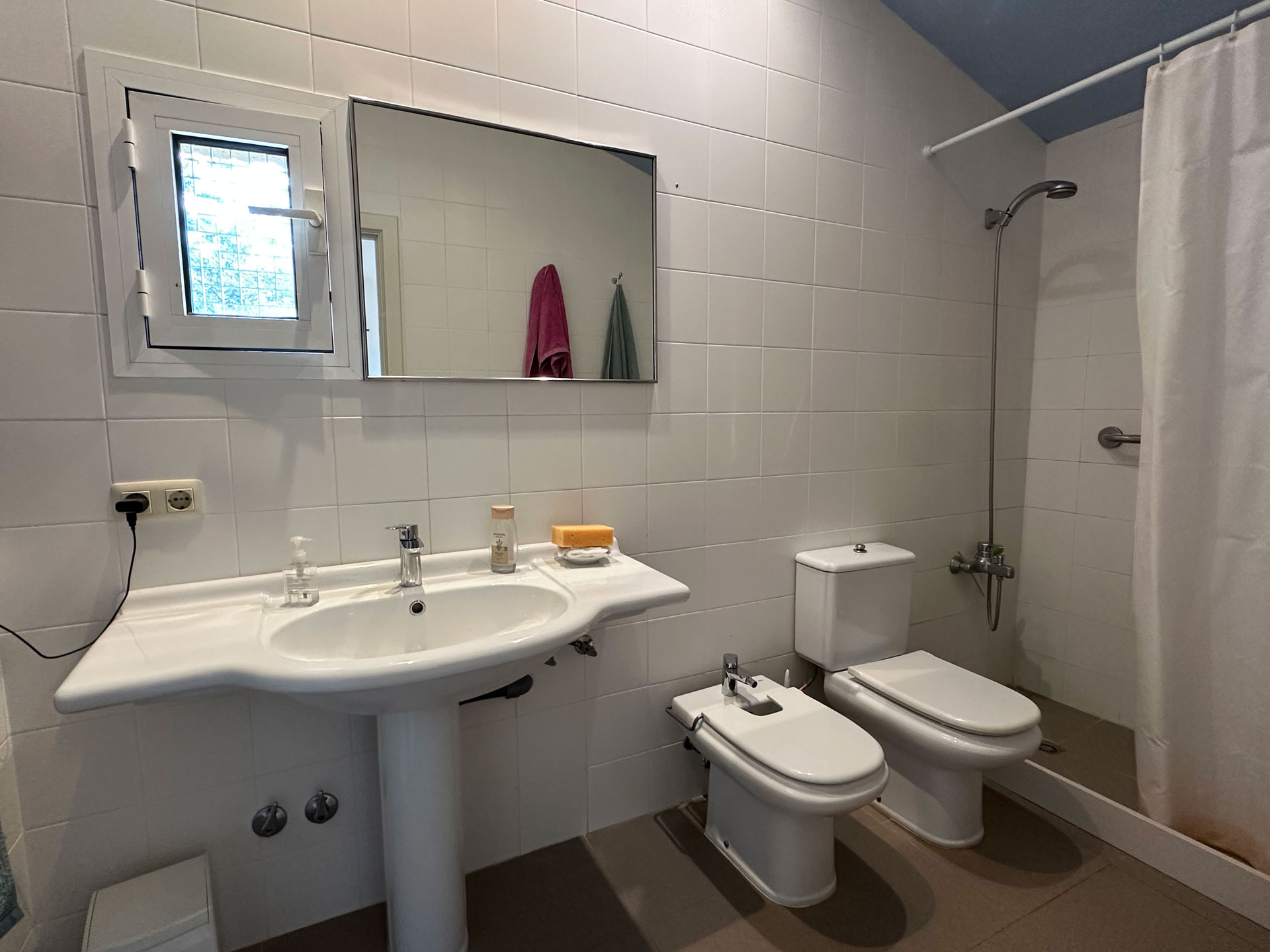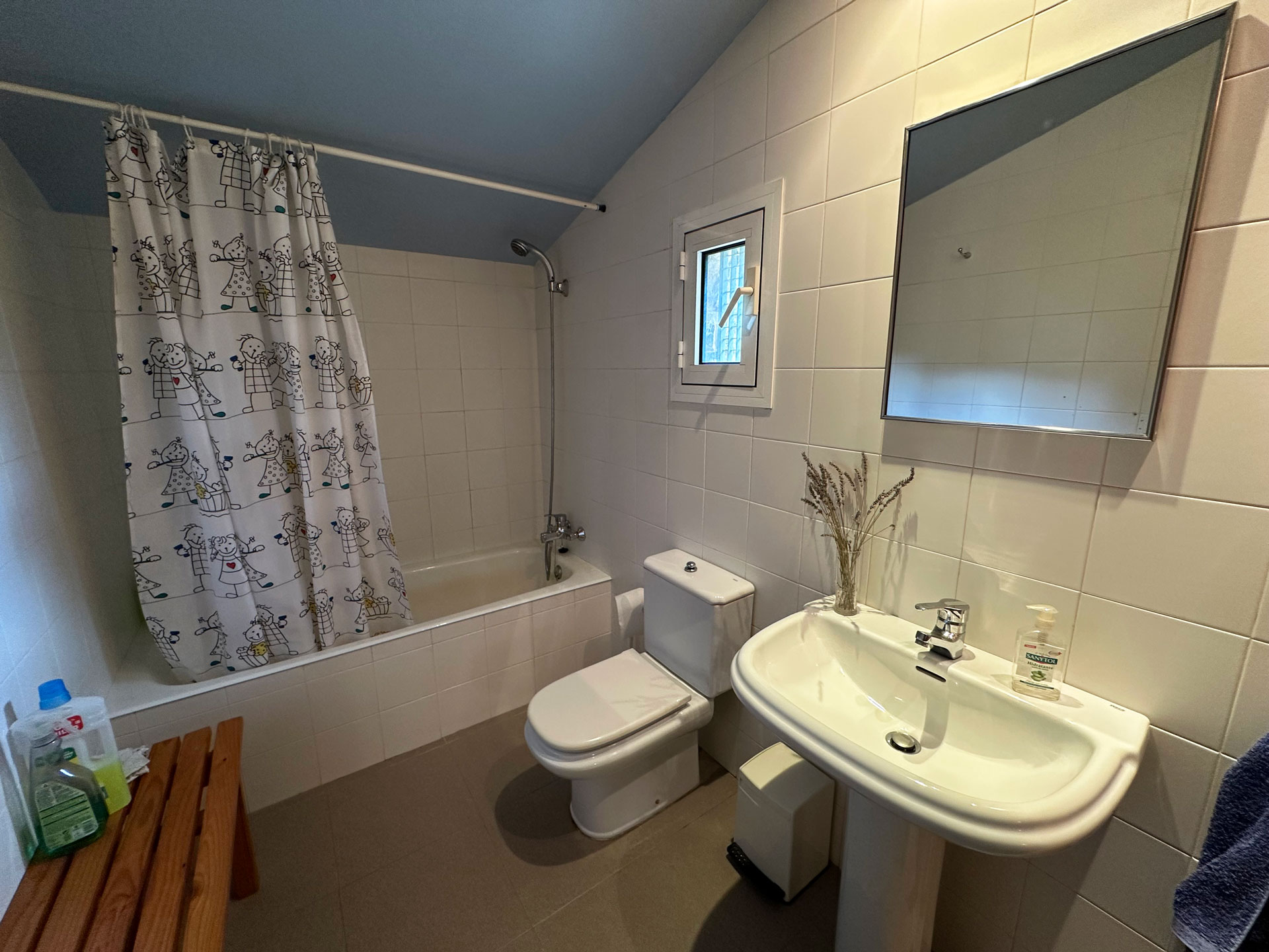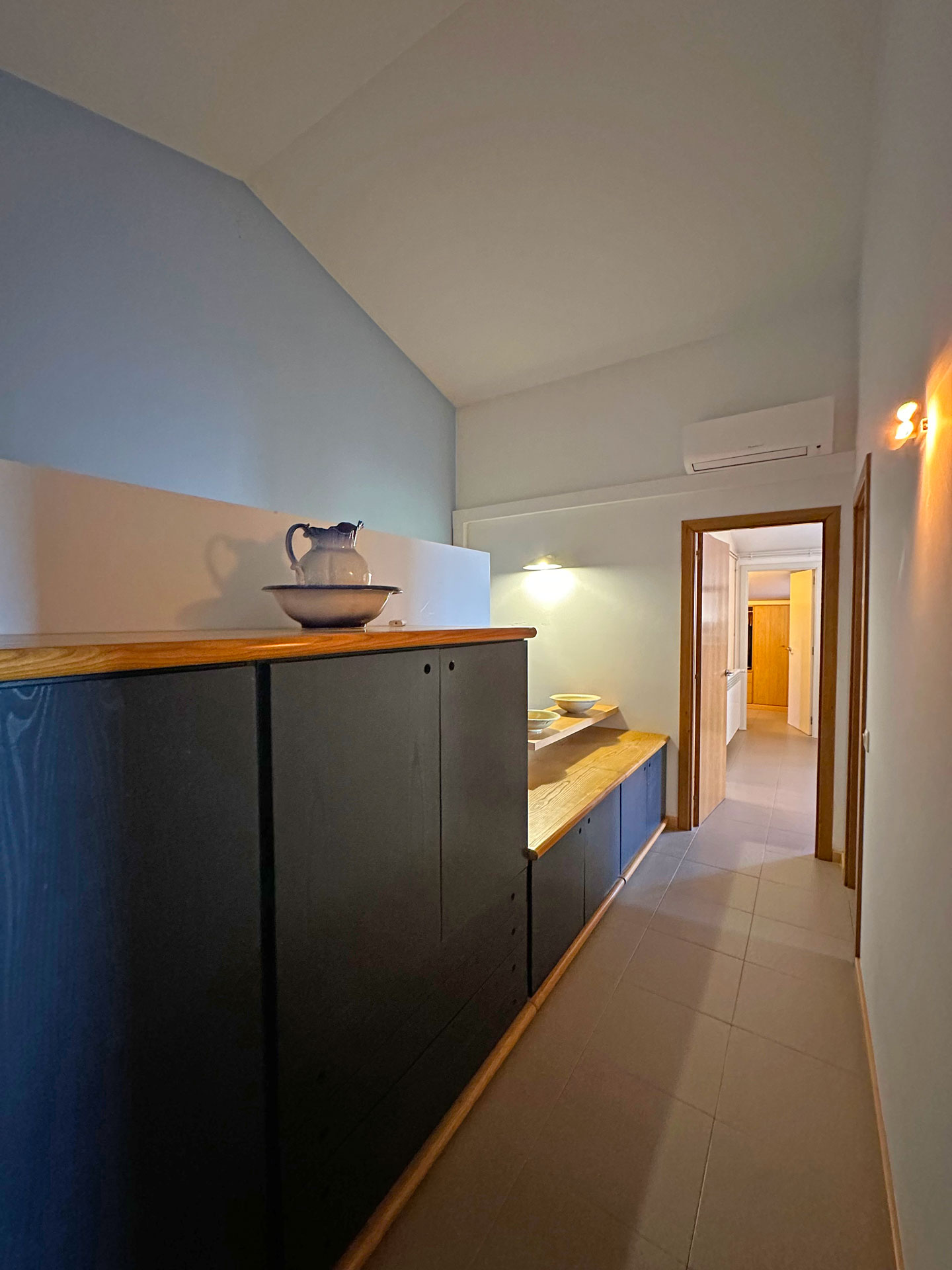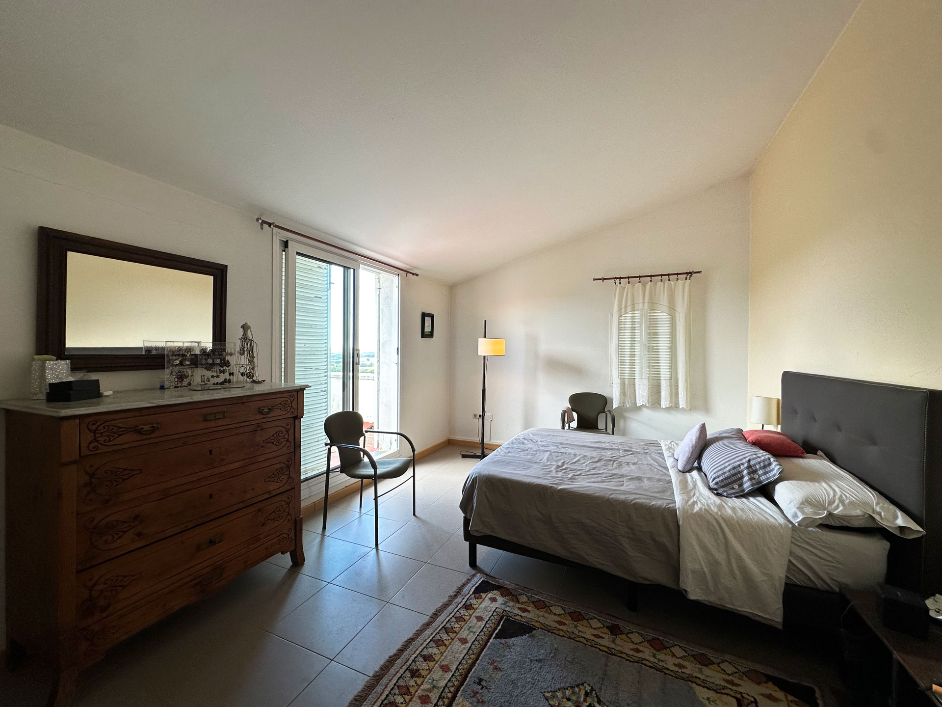 The kitchen is fully equipped and features a functional design. On this same floor, there is a full bathroom. From here, a staircase leads to the upper floor, where four double bedrooms are distributed. The master suite has a dressing room, private bathroom, and direct access to a private terrace with views. The other three rooms share a full bathroom. The sleeping area has air conditioning in the suite and in the hallway, ensuring comfort even in the warmer months.